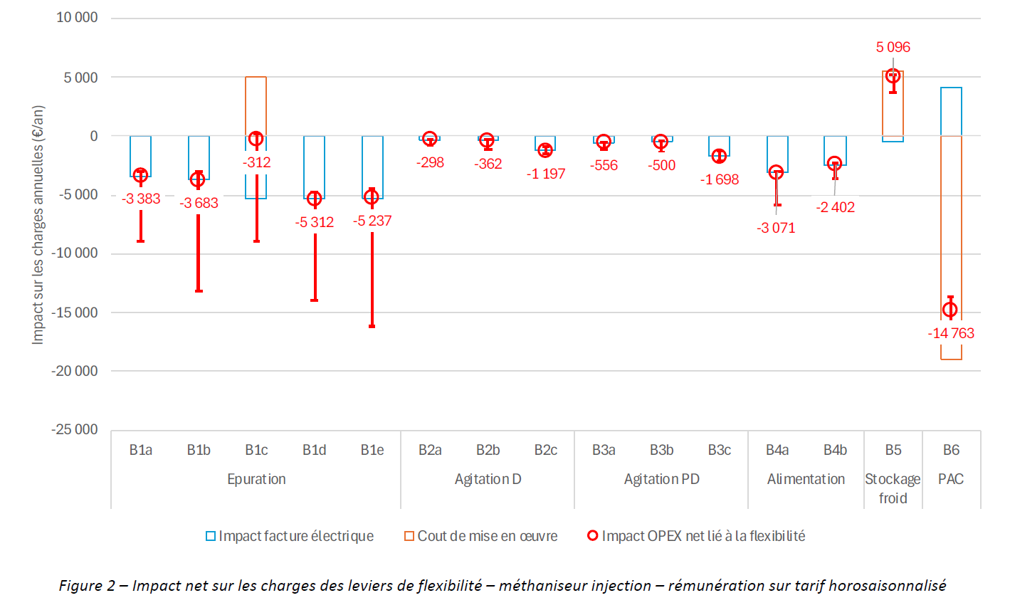 La flexibilité de l’épurateur permettrait une baisse de facture de 3 300 à 5 300 €/an, pouvant atteindre 15 000 €/an selon les hypothèses tarifaires.